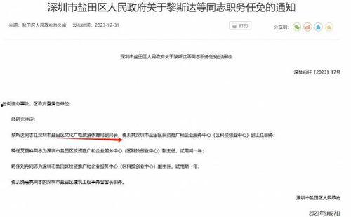 最近网络上可是炸开了锅,深圳市的最新任命消息成了大家茶余饭后的热门话题。这不,我就迫不及待地来给你揭秘一下这些新鲜出炉的任命动态,让你一睹为快!